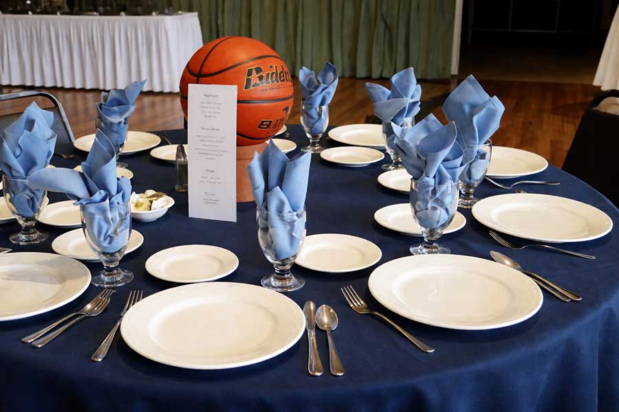 Your guests will enter our bright, spacious banquet hall and be delighted with our tables set with cloth napkins coordinated to your team colors. Enjoy a scrumptious meal with fresh, delicious flavors prepared for you by Chef Stan and served by our friendly banquet staff, and then surprise your guests with a fun ice cream sundae bar or gourmet hot cocoa station.